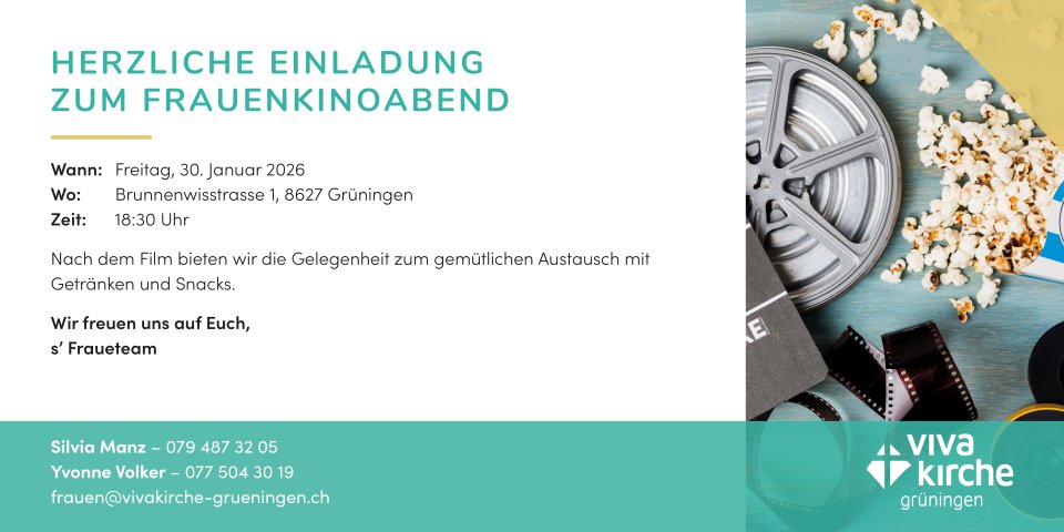 « Alle VeranstaltungenFrauen Kino30. Januar 2026 @ 18:30 - 21:00« Männertreffpunkt – EisstockschiessenUnihockey Turnier » Zum Kalender hinzufügen Google Kalender iCalendar Outlook 365 Outlook Live Details Datum: 30. Januar 2026 Zeit: 18:30 - 21:00Veranstaltung-Tags:Frauen, KinoVeranstalter Viva Kirche Grüningen Telefon 0782023136 E-Mail jochen.volker@vivakirche.ch Veranstaltungsort Viva Kirche Grüningen Brunnenwisstr 1 Grüningen,Zürich8627SchweizGoogle Karte anzeigen Telefon 0782023136