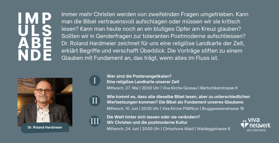 « Alle VeranstaltungenIMPULS ABENDEMai 27 @ 20:00 - Juni 24 @ 20:00« Stadtrundgang Zürich – Frauen gemeinsam unterwegsPaar-Abend » Zum Kalender hinzufügen Google Kalender iCalendar Outlook 365 Outlook Live Details Beginn: Mai 27 @ 20:00 Ende: Juni 24 @ 20:00 Veranstaltung-Tags:Vortrag