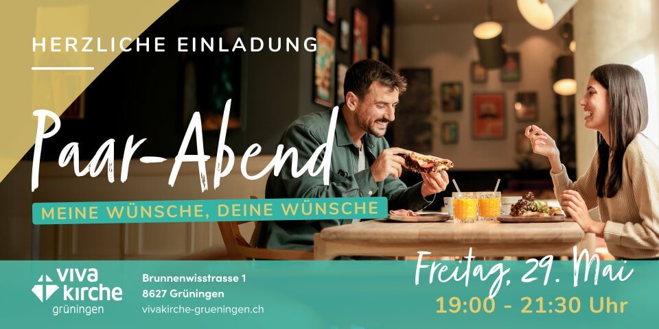 Veranstaltungen Nachfolge vom Meister lernen – Unterwegs als KleingruppenJanuar 15 @ 19:00 - September 17 @ 21:00 Stadtrundgang Zürich – Frauen gemeinsam unterwegsMai 9 @ 08:00 - 15:00 IMPULS ABENDEMai 27 @ 20:00 - Juni 24 @ 20:00 Paar-AbendMai 29 @ 19:30 - 21:30 Viva-Week 2026Oktober 4 - Oktober 9